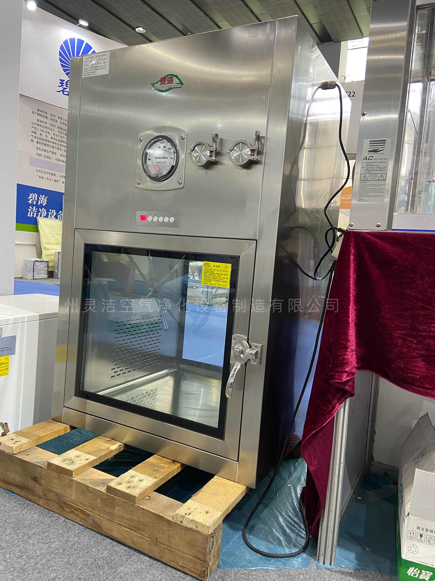 不锈钢洁净传递窗在传递货物时,顶部吹出高速、洁净气流,吹除货物表面的尘粒,内部配有紫外杀菌灯,可以有效的杀除货物表面的细菌。待吹淋完成时,方可打开另一扇门取走货物。洁净气流起到气闸作用,以保证洁净室室外的空气不会影响室内的洁净度。两侧门通过电子连锁控制不可同时打开,两侧门内侧边装有专用密封条,以确保不锈钢洁净传递窗的气密性。