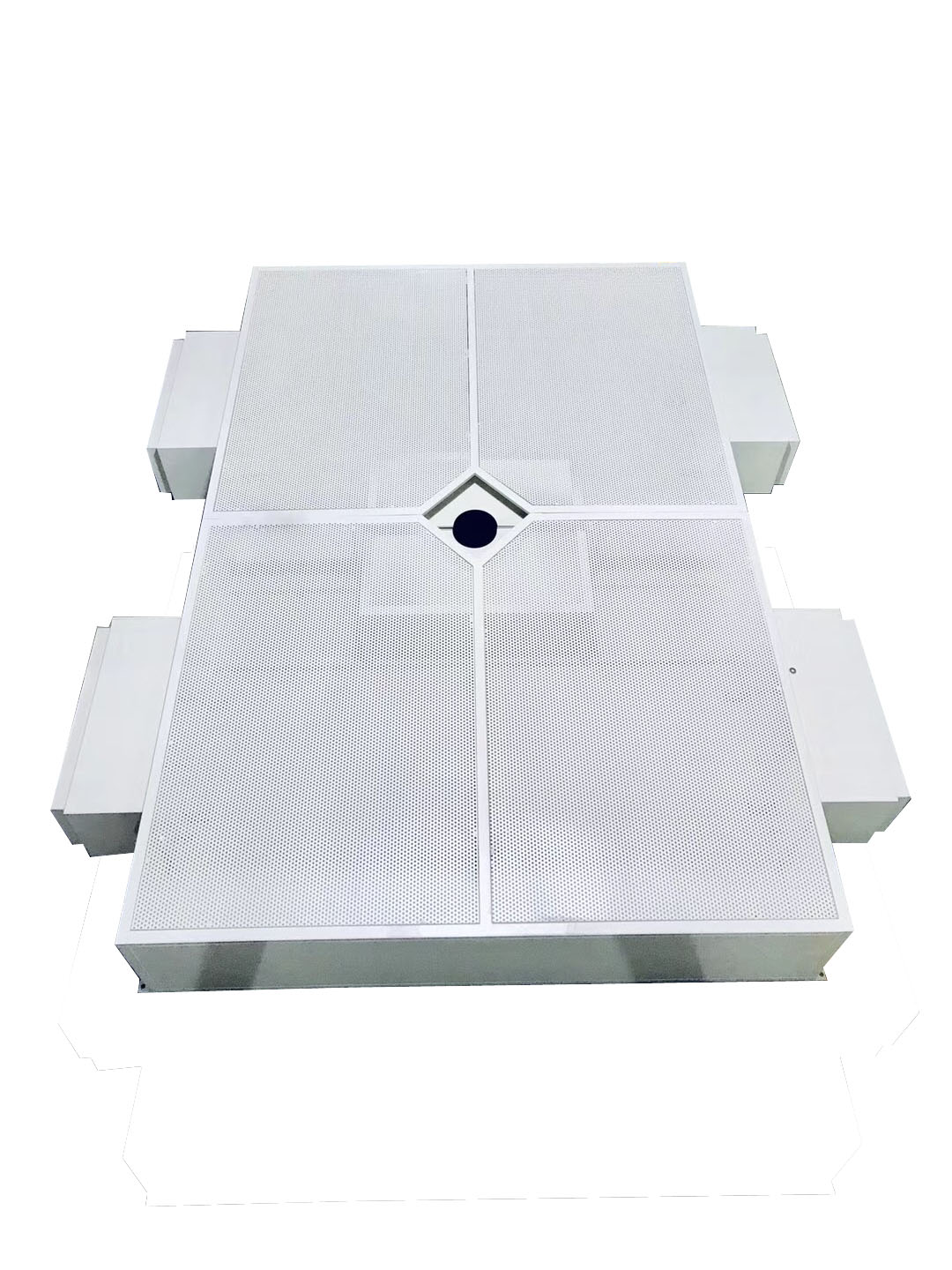 D  均流模式:多块网孔板组合,出风均韵,静电粉末喷涂,和墙顶面同色,表面效果好;